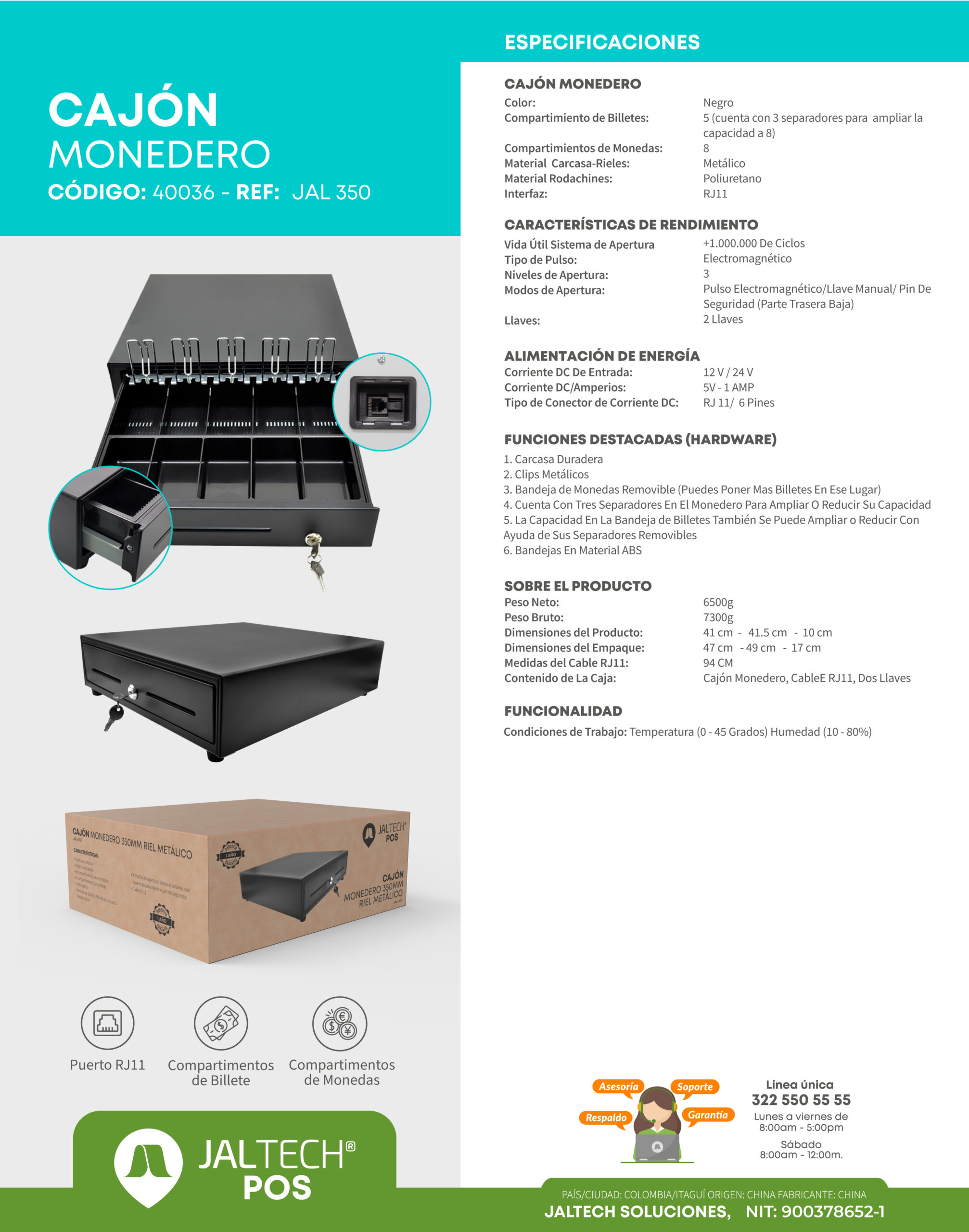 - Compartimentos de Billetes: 5 (cuenta con 3 separadores para ampliar la capacidad a 8)