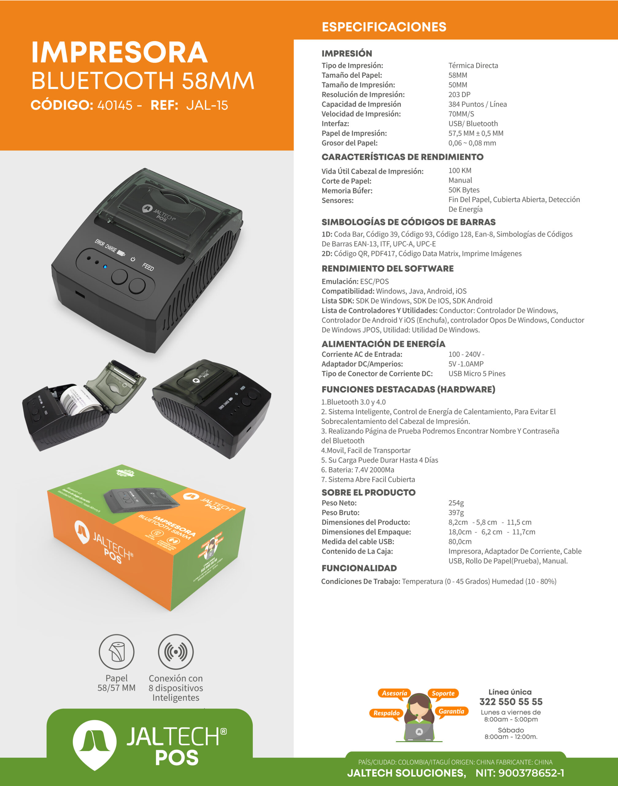 - Compatible código de barras 1D, 2D (código QR) e impresión de imágenes